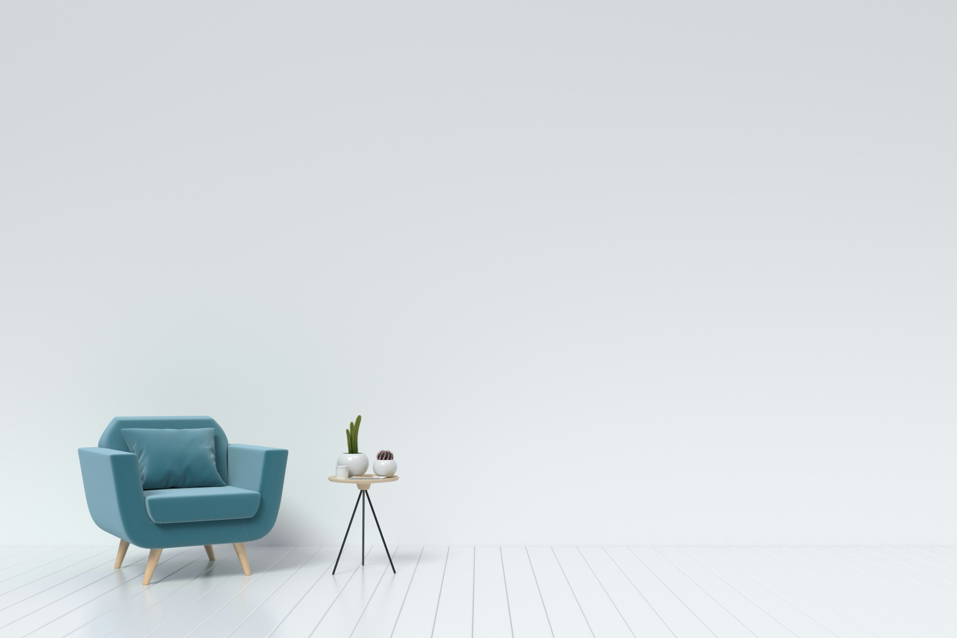 Placera fåtöljen en bit ut från väggen i stället för att trycka den tätt intill – det ger en känsla av rymd. Se till att det finns luft mellan möblerna och att du kan röra dig fritt. Om du har begränsat med plats kan ett litet sidobord ersätta ett stort soffbord.